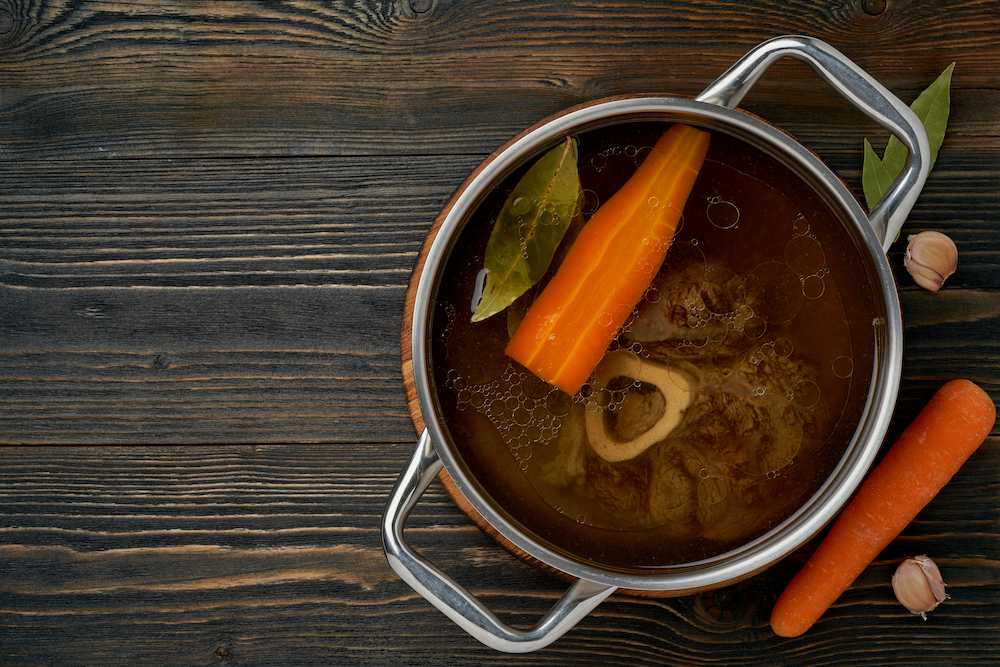 C’è poi il brodo di pesce, dal gusto delicato e molto meno grasso rispetto a quelli di carne. I pesci da preferire sono nasello, sogliola, orata e gallinella di mare, tutti da sfilettare prima di essere aggiunti in pentola con le verdure che preferisci. In questo caso, via libera all’uso del vino bianco per profumare il tuo brodo, insieme ad aromi come timo e pepe bianco.