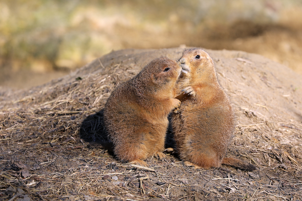 I piccoli roditori appartenenti, come gli scoiattoli, alla famiglia degli Sciuridi devono il loro nome al particolare suono che emettono, molto simile al latrato di un cane. Vivono in colonie in vaste aree erbose e pianeggianti, dove scavano dei sistemi di tane sotterranee che possono raggiungere anche i 30 metri di lunghezza. Ogni colonia è una realtà a sé, con la propria cultura e addirittura un proprio linguaggio! Tra gli strumenti di comunicazione dei cani della prateria – molti dei quali sono utili a evitare i predatori – c’è n’è uno fondamentale quanto originale: il bacio. I baci permettono infatti di stringere alleanze e tenere insieme una rete sociale nella quale tutti gli esemplari hanno un ruolo e nessuno domina sugli altri.