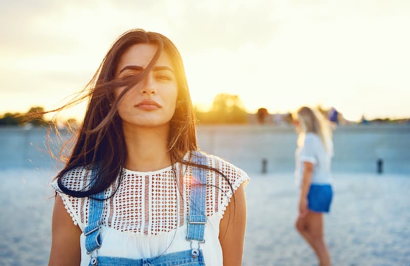 Quando i capelli sono esposti al vento, l'effetto crespo aumenta e le punte si seccano, quindi è bene applicare un trattamento idratante capace di nutrire e creare una protezione intorno alla fibra capillare; il vento, inoltre, li scompiglia, ma toccandoli spesso per sistemarli si finisce per sporcarli: meglio fare uno chignon, una treccia o una coda di cavallo. - Salsedine, da eliminare subito