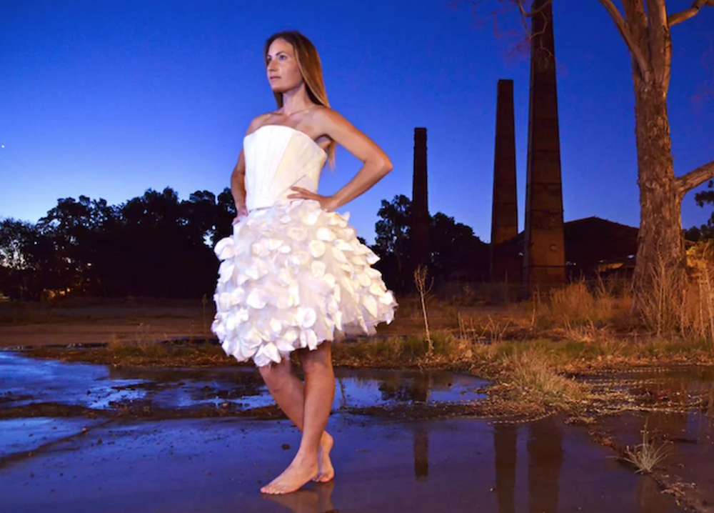 Il migliore sembrava essere l’Acetobacter xylinium, un batterio innocuo che durate la fermentazione della birra è in grado di produrre una fibra di cellulosa simile al cotone e del tutto inodore. Gary Cass si è occupato della parte “chimica”, Donna Franklin nel frattempo ha pensato al design dell’abito da sposa: ne è uscito lo splendido capo che si vede nell’immagine.