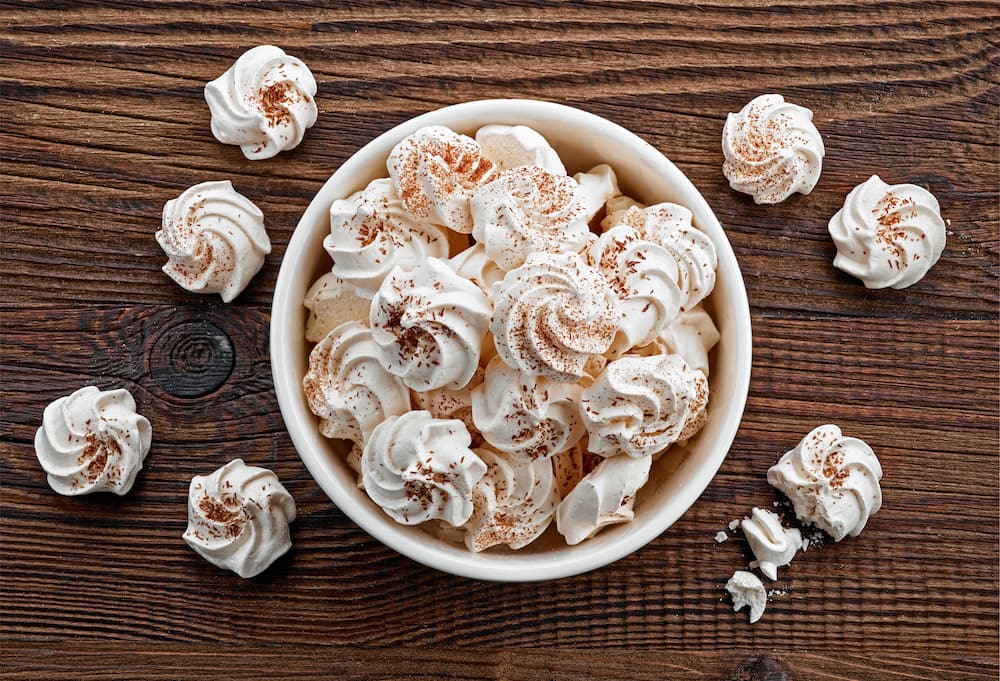 Ci sono diversi tipi di meringhe: quella francese, la più facile da preparare e la più diffusa in Italia (la meringa “comune”), quella italiana (più diffusa in Francia!), quella svizzera (più morbida) e quella giapponese, che prevede un’aggiunta di mandorle, così come nella variante sarda. Citiamo anche la meringa vegana, che utilizza l’acqua di conservazione dei ceci precotti.